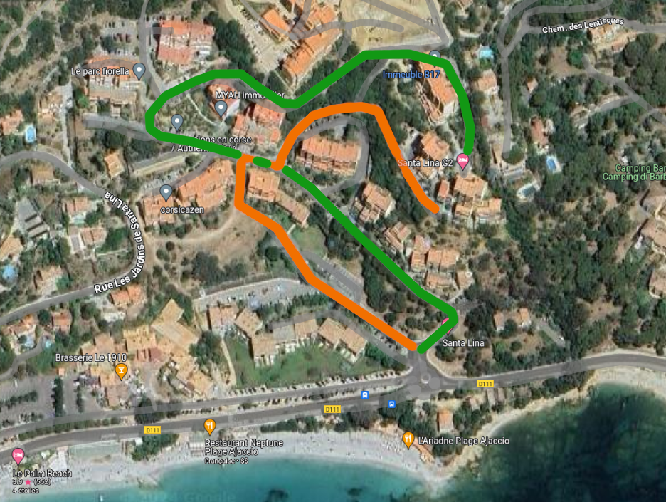 Détail du trajet depuis le bas de la résidence